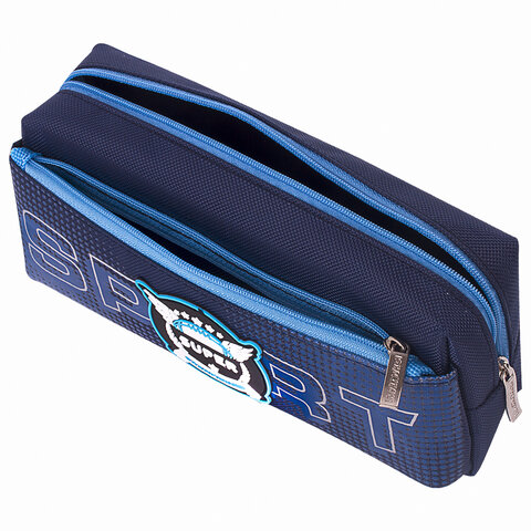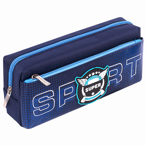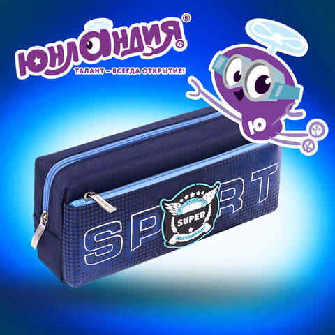 Пенал мягкий ЮНЛАНДИЯ, 2 отделения, полиэстер, "Super", синий, 21х6х9 см, 270277
