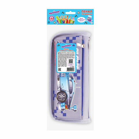 Пенал мягкий ЮНЛАНДИЯ, 2 отделения, полиэстер, "Car champion", серый, 21х6х9 см, 228983