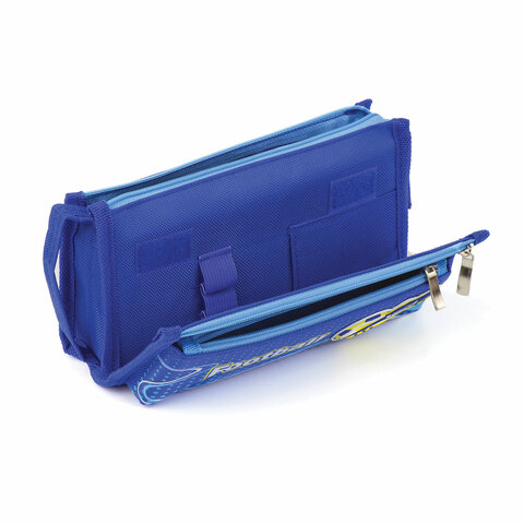 Пенал ЮНЛАНДИЯ для мальчиков, 3 отделения, мягкий, "Футбол", синий, 20х7х9 см, 228979