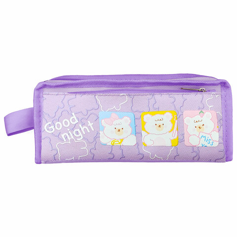 Пенал ЮНЛАНДИЯ ЮНИОР, 2 отделения, с ручкой, полиэстер, "Bears", 21х8х6 см, 273815