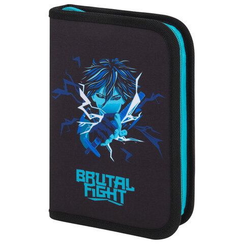Пенал BRAUBERG с наполнением, 1 отделение, 1 откидная планка, 24 предмета, 21х14 см, "Anime fight", 272354