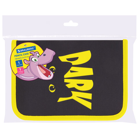 Пенал BRAUBERG с наполнением, 1 отделение, 1 откидная планка, 24 предмета, 21х14 см, "Dark cat", 272351