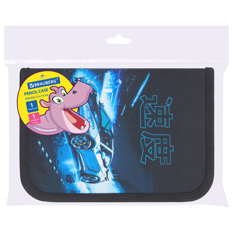 Пенал BRAUBERG с наполнением, 1 отделение, 1 откидная планка, 24 предмета, 21х14 см, "Night race", 272352