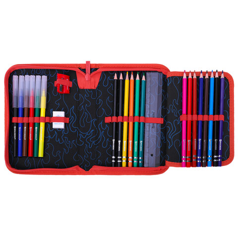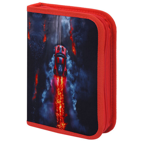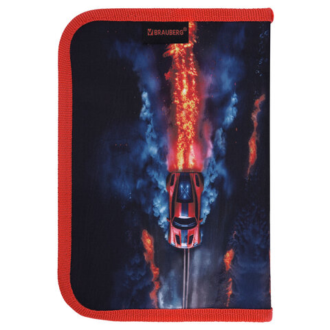 Пенал BRAUBERG с наполнением, 1 отделение, 1 откидная планка, 24 предмета, 21х14 см, "Foggy car", 273533