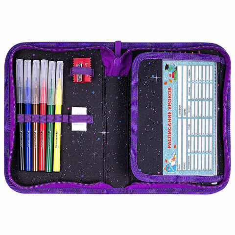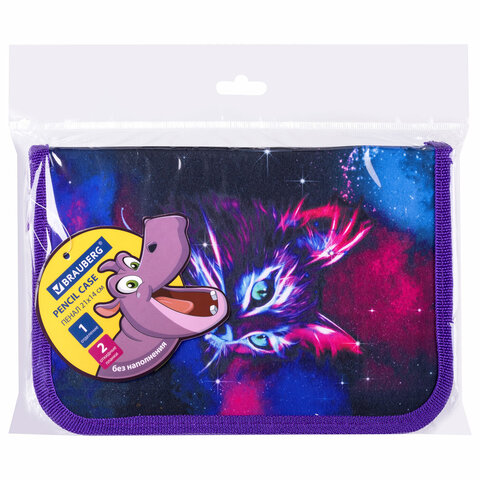 Пенал BRAUBERG с наполнением, 1 отделение, 1 откидная планка, 24 предмета, 21х14 см, "Neon cat", 271523