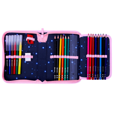 Пенал BRAUBERG с наполнением, 1 отделение, 1 откидная планка, 24 предмета, 21х14 см, "Night catcher", 273530
