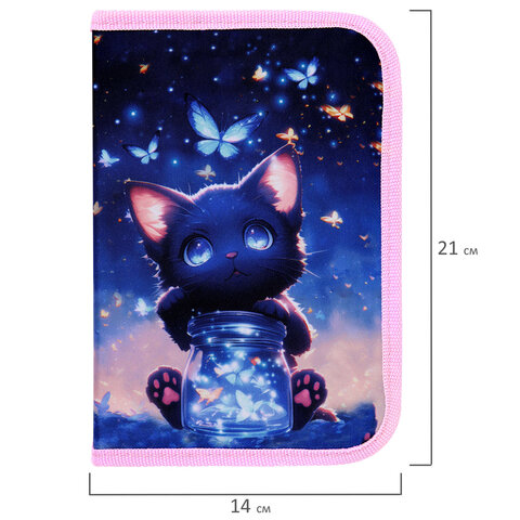 Тканевый пенал BRAUBERG "Night catcher" стандартного размера с одним отделением и одной откидной планкой. Удобная молния с трех сторон с металлическим бегунком, прочные резинки для предметов. Пенал с наполнением включает 24 предмета.