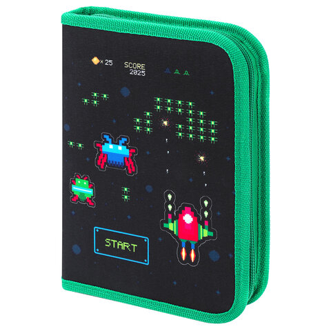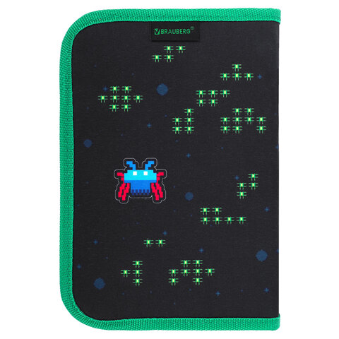 Тканевый пенал BRAUBERG "Space strike" стандартного размера с одним отделением и одной откидной планкой. Удобная молния с трех сторон с металлическим бегунком, прочные резинки для предметов. Пенал с наполнением включает 24 предмета.