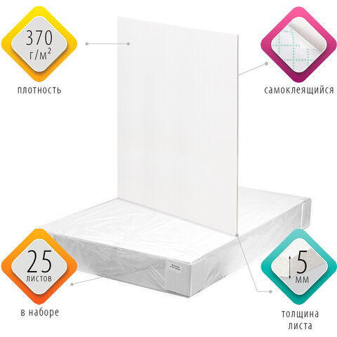 Пенокартон матовый САМОКЛЕЯЩИЙСЯ, 70х100 см, толщина 5 мм, белый, BRAUBERG, 112481