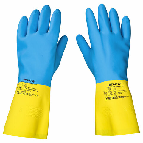 Перчатки латексно-неопреновые SCAFFA "Спектр", КЩС-1, хлопчатобумажное напыление, размер 8, M (средний), 00-01017726