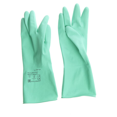 Перчатки латексные КЩС, сверхпрочные, плотные, хлопковое напыление, размер 8,5-9, L (большой), зеленые, HQ Profiline, 73586