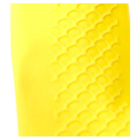 Универсальные латексные перчатки КЩС с хлопковым напылением, прочные на растяжение и прокол. Подходят для ежедневной уборки, в том числе с использованием химии и дезинфектантов (согласно инструкции по применению). Рельефная поверхность в области захвата.