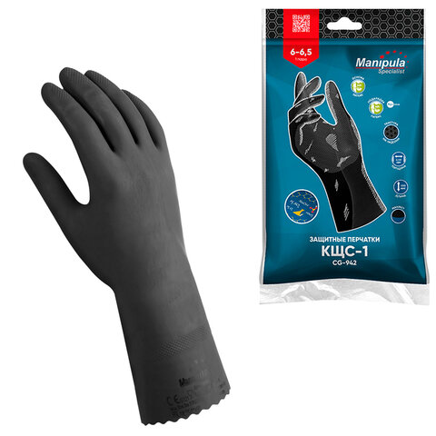 Перчатки латексные MANIPULA "КЩС-1", двухслойные, размер 9, L (большой), черные, L-U-03/CG-942