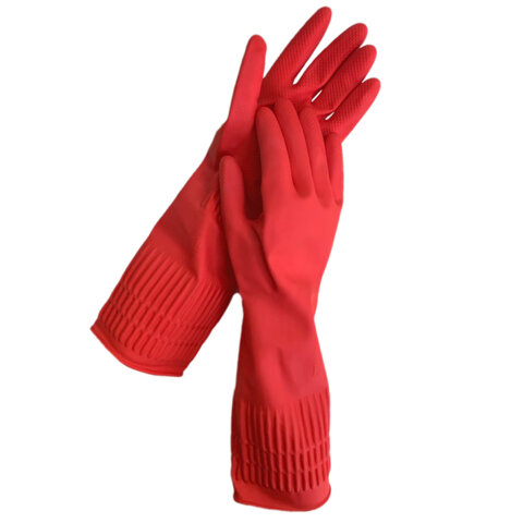 Перчатки МНОГОРАЗОВЫЕ латексные LAIMA, c ДЛИННОЙ МАНЖЕТОЙ 25 см, КРАСНЫЕ, размер L (большой), вес 80 г, 700530