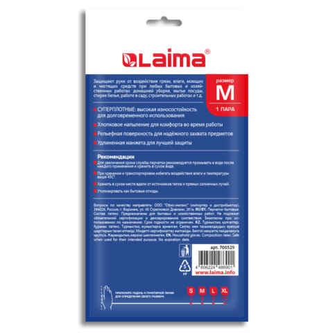 Универсальные суперплотные латексные перчатки LAIMA защищают руки от воздействия грязи, влаги, моющих и чистящих средств при любых бытовых и хозяйственных работах: мытьё посуды, стирка белья, уборка, садоводческая работа и т.д.