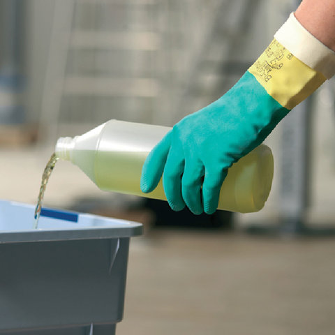 Усиленные 3-слойные латексные перчатки VILEDA Professional с неопреновой обработкой. Прочные, долговечные, а также защищают от вирусов. Идеальны для генеральной уборки с использованием агрессивной химии.