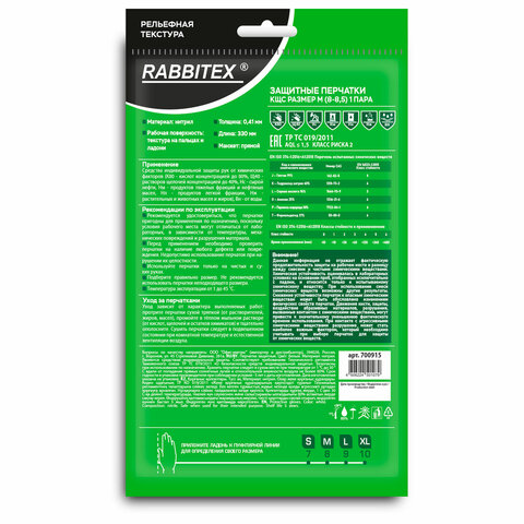 Нитриловые перчатки RABBITEX для защиты рук от загрязнений и химических факторов: кислот, щелочей, нефтепродуктов, растительных и животных масел и жиров, а также от воды и растворов нетоксичных веществ. Могут применяться в быту и на производстве.