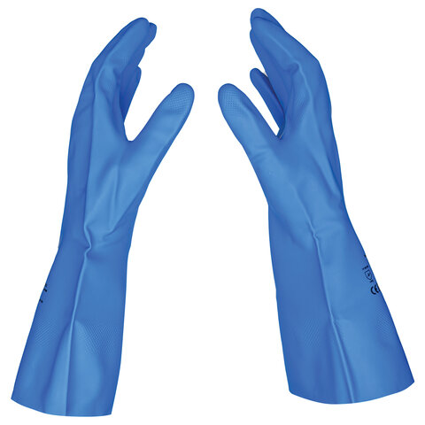 Нитриловые перчатки от химических воздействий SCAFFA Практик КЩС (растворов кислот концентрацией 80%, растворов щелочей концентрацией 50%) с хлопчатобумажным напылением, текстурированной рабочей поверхностью. Безопасны для контакта с пищевыми продуктами.