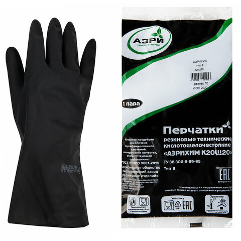 Перчатки резиновые технические кислотощелочестойкие КЩС Тип-2, АЗРИ, размер 10, XL (очень большой), К20Щ20