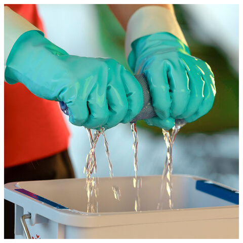 Нитриловые перчатки VILEDA без латекса для уборки с интенсивным применением моющих средств. Подходят для работы с продуктами питания. Защищают от бактерий и вирусов.