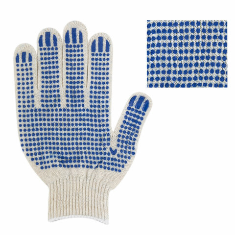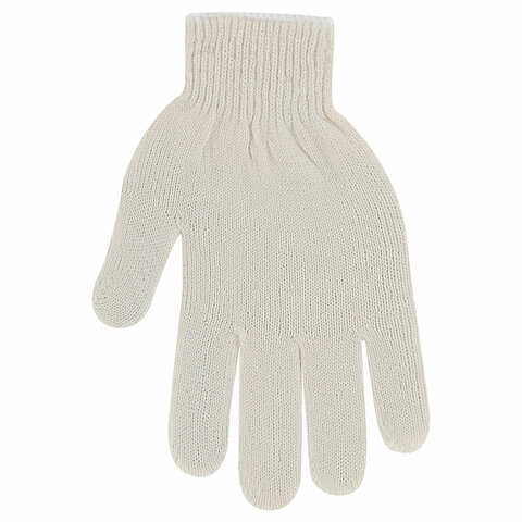 Перчатки хлопчатобумажные эконом, КОМПЛЕКТ 100 пар, 10 класс, 26-28 г, 83 текс, С ПВХ, LAIMA ЭКОНОМ, БЕЛЫЕ, 608680