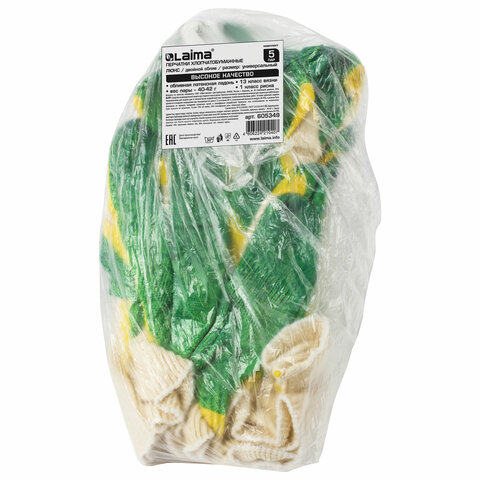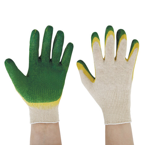 Перчатки хлопчатобумажные износостойкие, ДВОЙНОЙ латексный облив, 13 класс, КОМПЛЕКТ 5 ПАР, LAIMA ЛЮКС, 605349