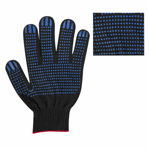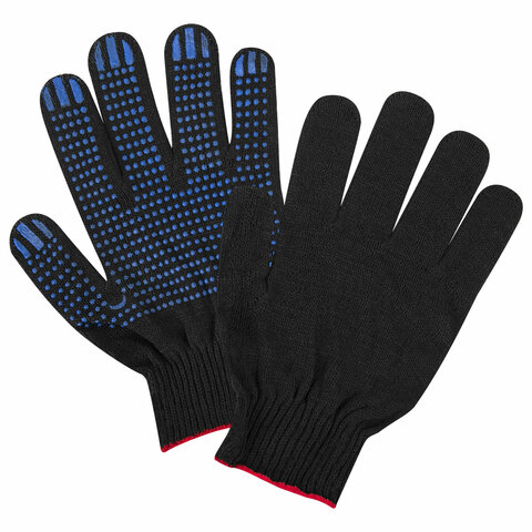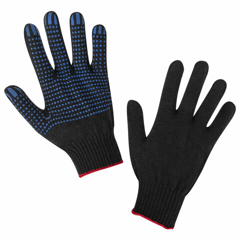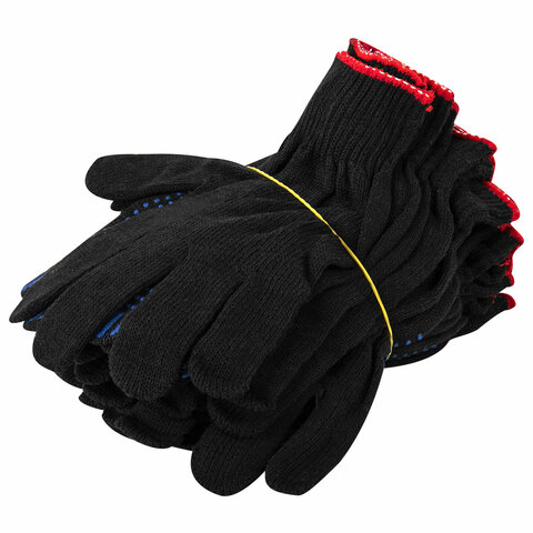 Перчатки хлопчатобумажные, КОМПЛЕКТ 100 ПАР, 10 класс, 40-42 г, 116 текс, ПВХ-точка, LAIMA ЛЮКС ЧЕРНЫЕ, 608677