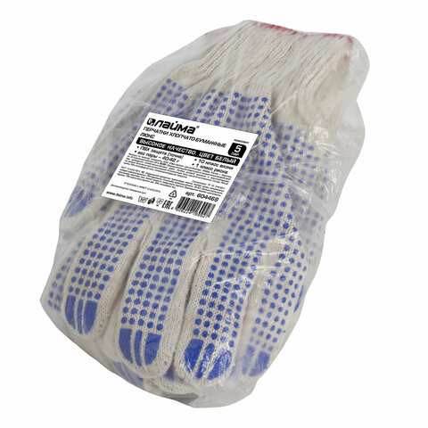 Хлопчатобумажные перчатки LAIMA "ЛЮКС" позволяют защитить руки от внешних воздействий в процессе физических нагрузок.