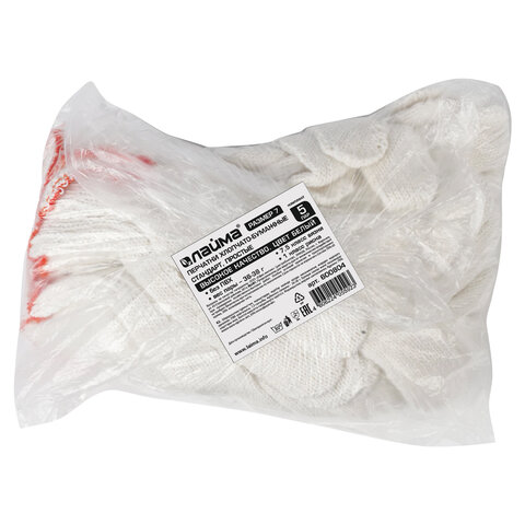 Перчатки хлопчатобумажные, КОМПЛЕКТ 5 ПАР, 7,5 класс, 36-38 г, 166 текс, БЕЗ ПВХ, LAIMA "СТАНДАРТ", БЕЛЫЕ, 600804