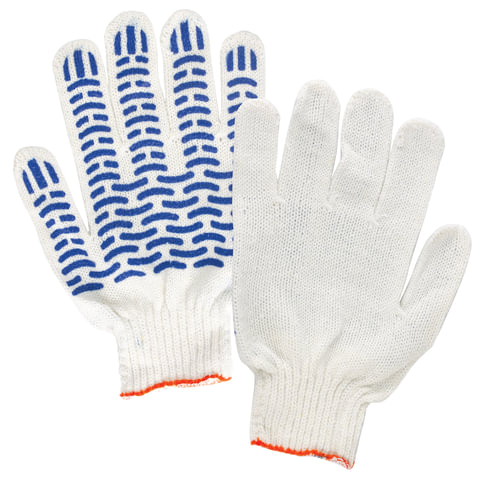 Перчатки хлопчатобумажные, КОМПЛЕКТ 5 ПАР, 7,5 класс, 46-48 г, 166 текс, ПВХ волна, LAIMA "СТАНДАРТ", БЕЛЫЕ, 600800