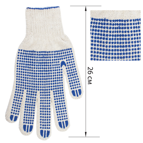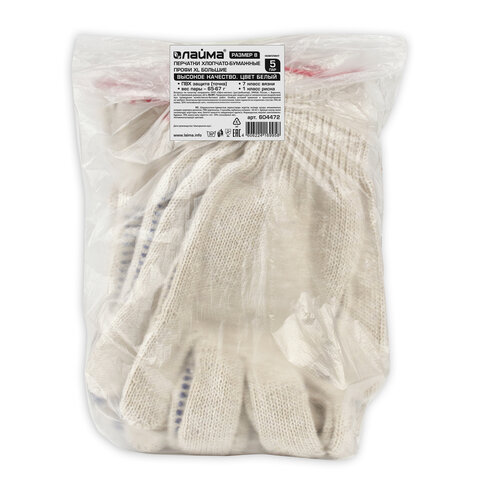 Перчатки хлопчатобумажные, КОМПЛЕКТ 5 ПАР, 7 класс, 65-67 г, 216 текс, ПВХ точка, LAIMA "ПРОФИ" XL, БЕЛЫЕ, 604472