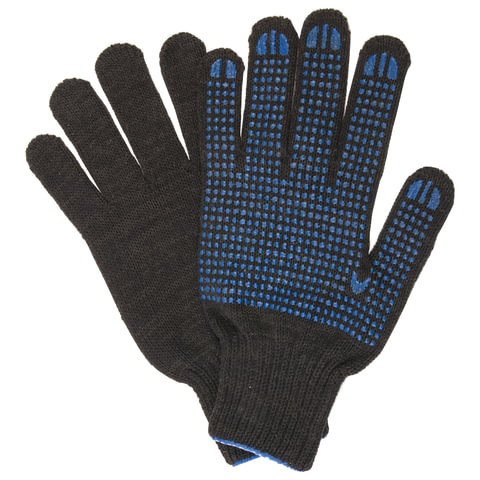 Перчатки хлопчатобумажные, КОМПЛЕКТ 5 ПАР, 7 класс, 65-67 г, 216 текс, ПВХ-точка, LAIMA "ПРОФИ" XL, черные, 604473