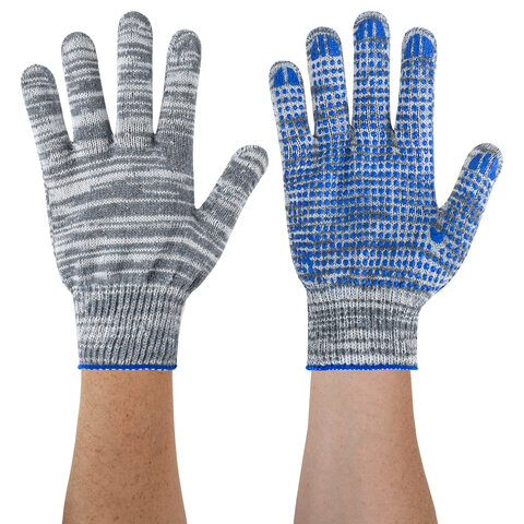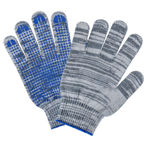 Перчатки хлопчатобумажные плотные, КОМПЛЕКТ 100 ПАР, 10 класс, 50-52 г, 133 текс, ПВХ-точка LAIMA ЛЮКС 2, СЕРЫЕ, 608679