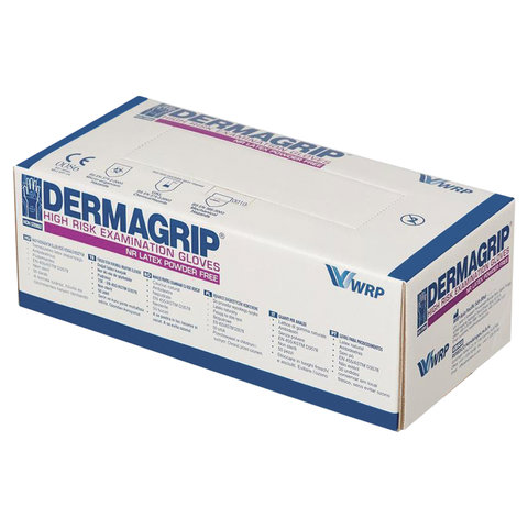 Перчатки латексные смотровые, 25 пар (50 штук), сверхпрочные, размер 6-7, S (малый), DERMAGRIP High Risk, D1401-14