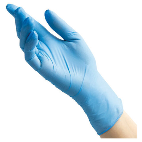 Перчатки нитриловые смотровые 100 пар (200 штук), размер 7-8, M (средний), голубые, BENOVY Nitrile Chlorinated,