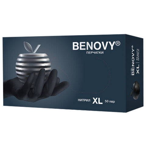 Перчатки нитриловые смотровые 50 пар (100 штук), размер 9-10, XL (очень большой), черные, BENOVY MultiColor