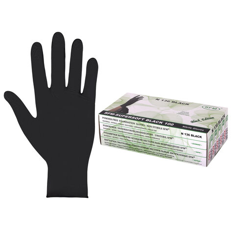 Перчатки нитриловые смотровые SFM Supersoft N136, Германия, 100 пар (200 штук), размер 8-9, L (большой), черные