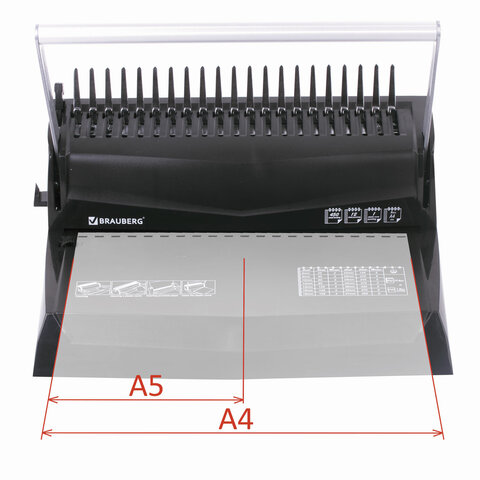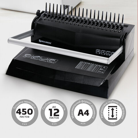 Переплетная машина для пластиковой пружины BRAUBERG B12, пробивает до 12 листов, сшивает до 450 листов, 530959