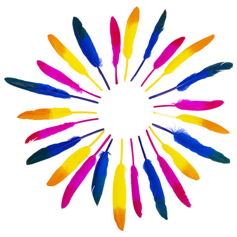 Перья декоративные прямые, 10-15 см, 24 шт., 6 цветов, двухцветные, ассорти, ОСТРОВ СОКРОВИЩ, 661381