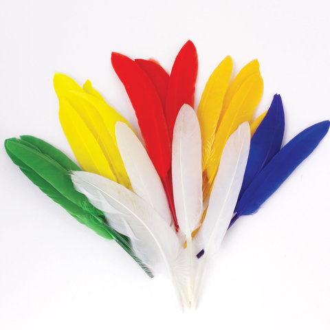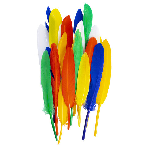 Перья декоративные прямые, 10-15 см, 24 шт., 6 цветов, яркие, ассорти, ОСТРОВ СОКРОВИЩ, 661380