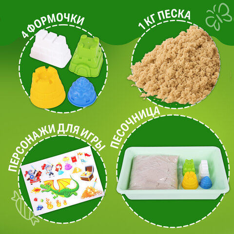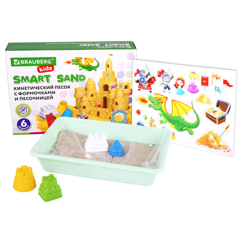 Кинетический Умный песок "Чудесный замок" с песочницей и формочками, 1 кг, BRAUBERG KIDS, 664918