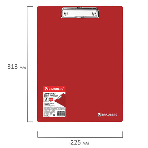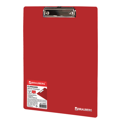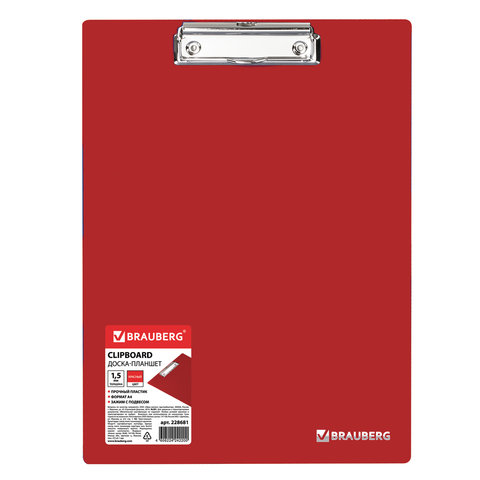 Доска-планшет BRAUBERG "Contract" с прижимом А4 (313х225 мм), пластик, 1,5 мм, КРАСНАЯ, 228681