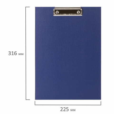 Доска-планшет STAFF "EVERYDAY" с прижимом А4 (225х316 мм), картон/бумвинил РОССИЯ, синяя, 229052
