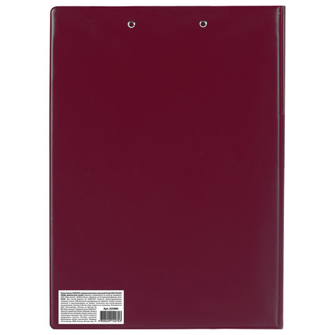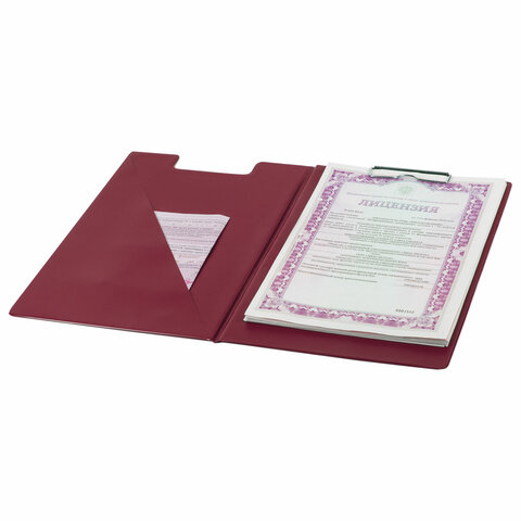 Папка-планшет ОФИСМАГ, А4 (340х240 мм), с прижимом и крышкой, картон/ПВХ, РОССИЯ, бордовая, 225984