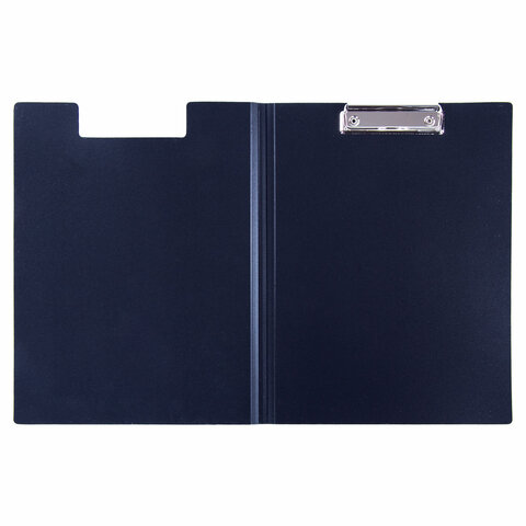Папка-планшет STAFF, А4 (310х230 мм), с прижимом и крышкой, пластик, синяя, 0,5 мм, 229220
