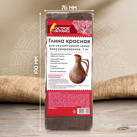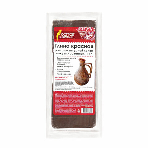 Экологически чистая красная глина ОСТРОВ СОКРОВИЩ идеально подойдет для скульптурной лепки, гончарного дела, набивки, формовки. Способствует развитию мелкой моторики, творческих способностей и пространственного мышления.