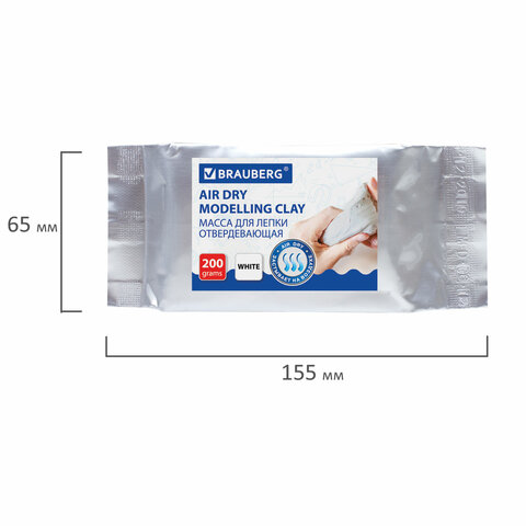 Паста (масса) для лепки BRAUBERG, самозатвердевающая, 200 г, натуральный белый, ВЫСШЕЕ КАЧЕСТВО, 224441