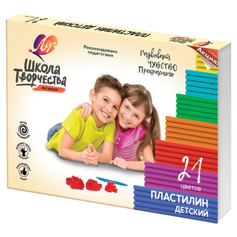 Пластилин классический ЛУЧ "Школа творчества", 21 цвет, 420 г, стек, картонная упаковка, 29С 1765-08