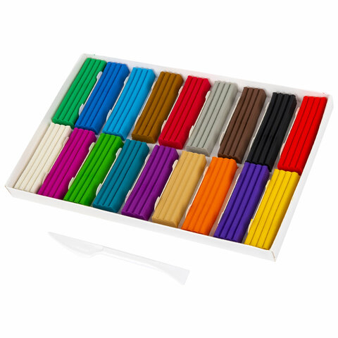 Пластилин классический BRAUBERG "АКАДЕМИЯ КЛАССИЧЕСКАЯ", 18 цветов, 360 г, СО СТЕКОМ, 106509
