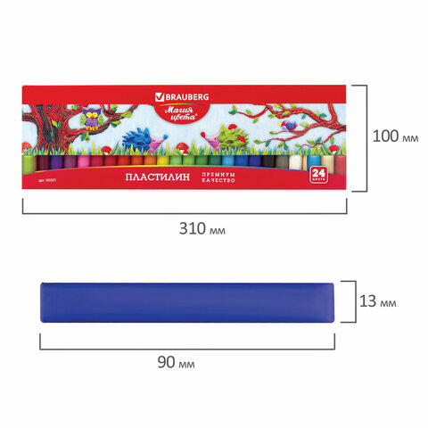 Пластилин классический BRAUBERG "МАГИЯ ЦВЕТА", 24 цвета, 500 г, ВЫСШЕЕ КАЧЕСТВО, картонная упаковка, 103351
